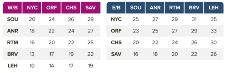 • Change in Rotation: Baltimore will be replaced by Charleston and Savannah.